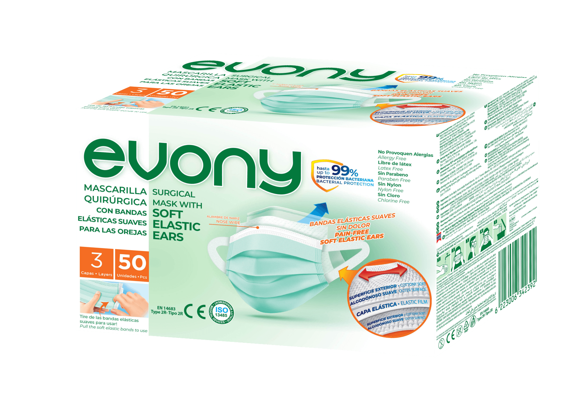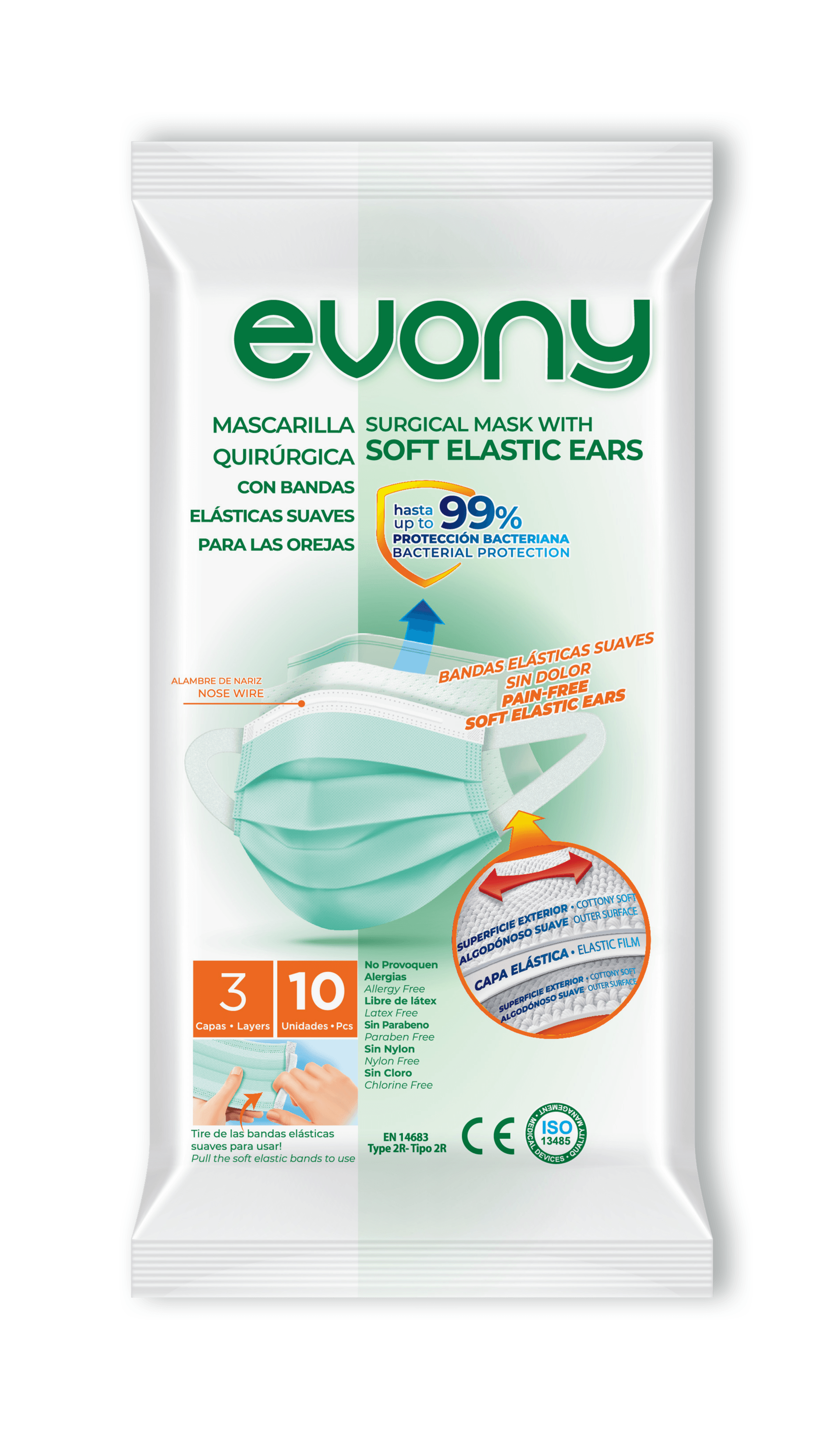 • 3-lagige Einweg-Maske, Filter Typ IIR mit sehr hoher Filterklasse (Ø BFE >= 99,88% gemäß ASTM F 2299 )