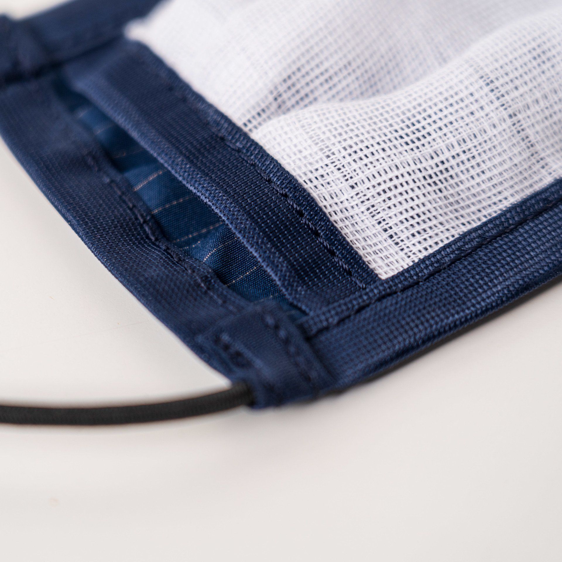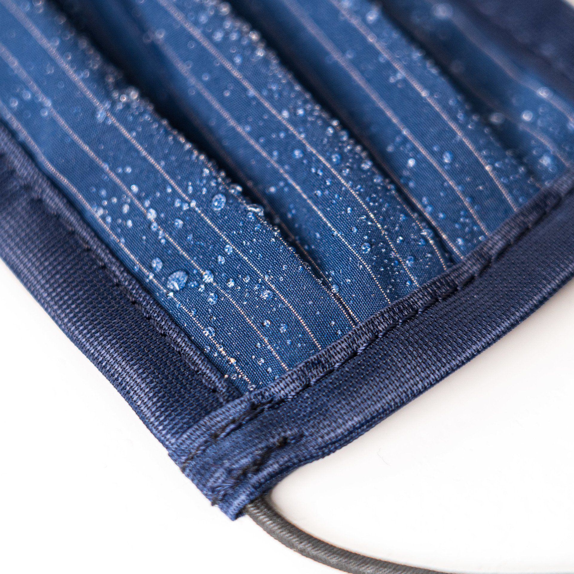 Die Imprägnierung auf einer Seite bewirkt, dass das Material wasserundurchlässig und begrenzt luftdurchlässig ist. Der Luftaustausch beim Atmen erfolgt somit im Wesentlichen vorbei an den Rändern der Maske.